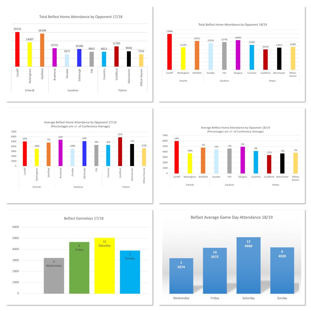 I commented last year on Giants having games on a Sunday being a bad idea, having to have pizza for breakfast being one of the reasons but that’s just a hungover away fan perspective, hockey wise Sundays this past season weren’t quite as far behind Saturdays but Fridays saw a significant average drop. Simply put, Belfast is a ‘Hockey Saturday’ kind of place!