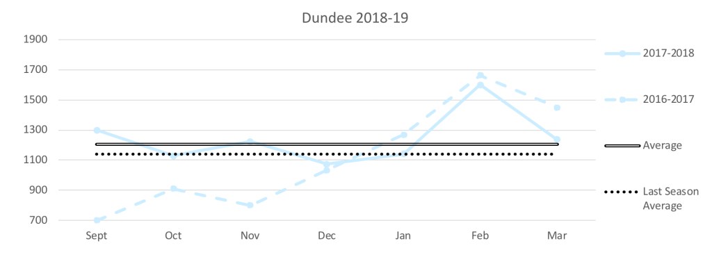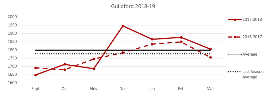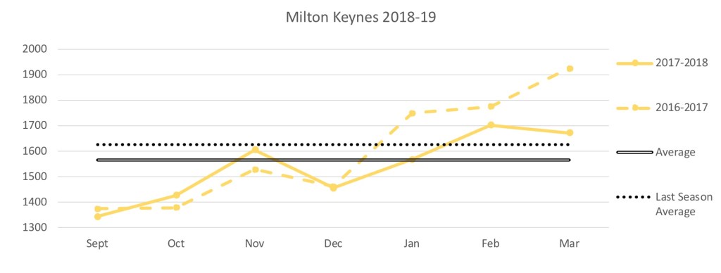 The days of the week seem to have followed a similar pattern to the 17/18 season but they are slightly lower, hopefully that’s not a trend that continues.
