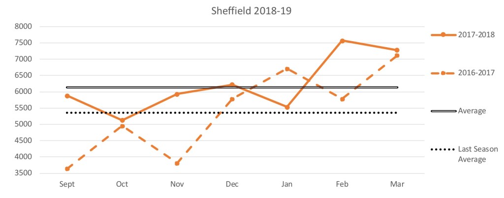 So, no Ice Sheffield to try and adjust for this year (Thankfully!) and the lack of games in the en-suite goes a long way to explaining the jump in overall per-game average attendance! Next year will be more comparable.