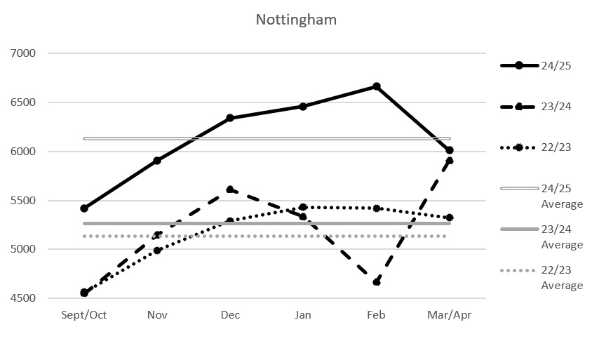 I’m still of the opinion that the pre-Covid figures have some relevance, and five years seems like a nice round number to me, and possibly anyone else who grew up in a generation that had a go on a tombola winning on numbers that ended in a five or a zero.