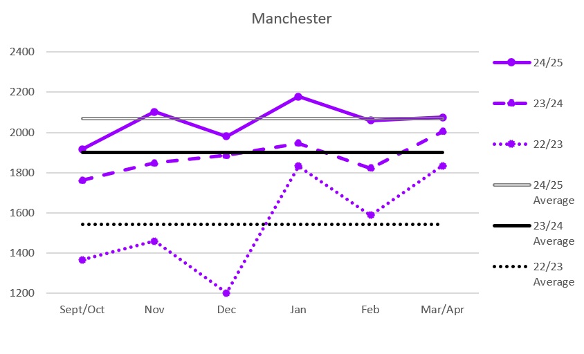 I’m still of the opinion that the pre-Covid figures have some relevance, and five years seems like a nice round number to me, and possibly anyone else who grew up in a generation that had a go on a tombola winning on numbers that ended in a five or a zero.